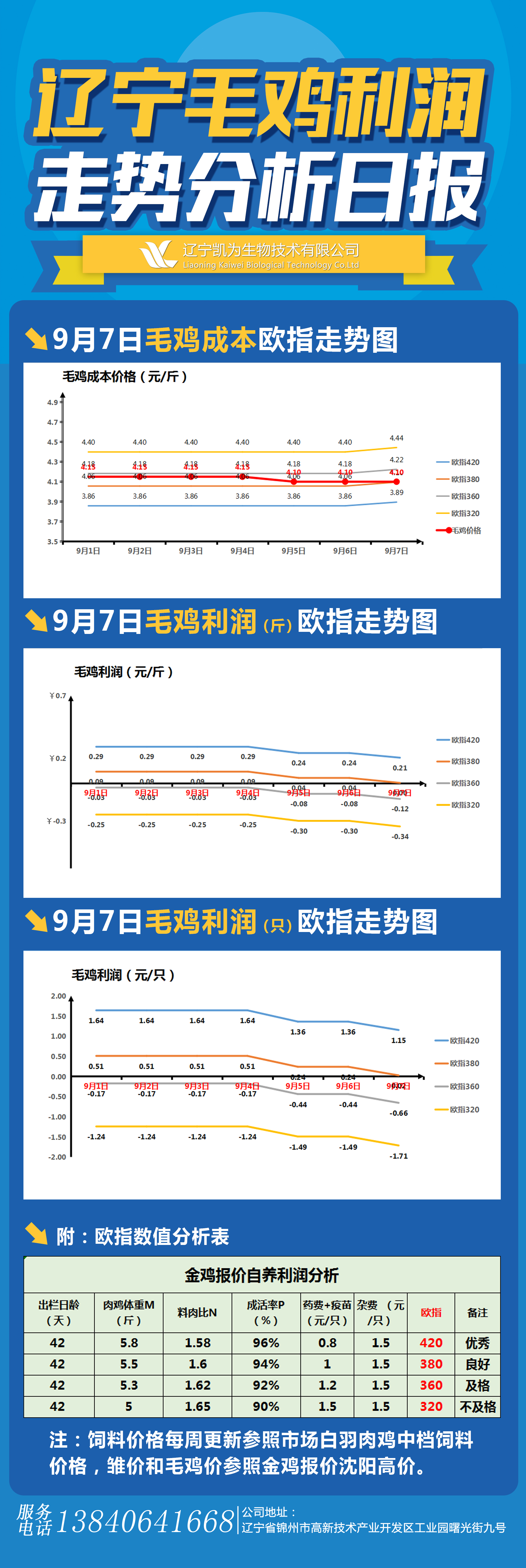 9月7日遼寧地區毛雞利潤走勢分析圖