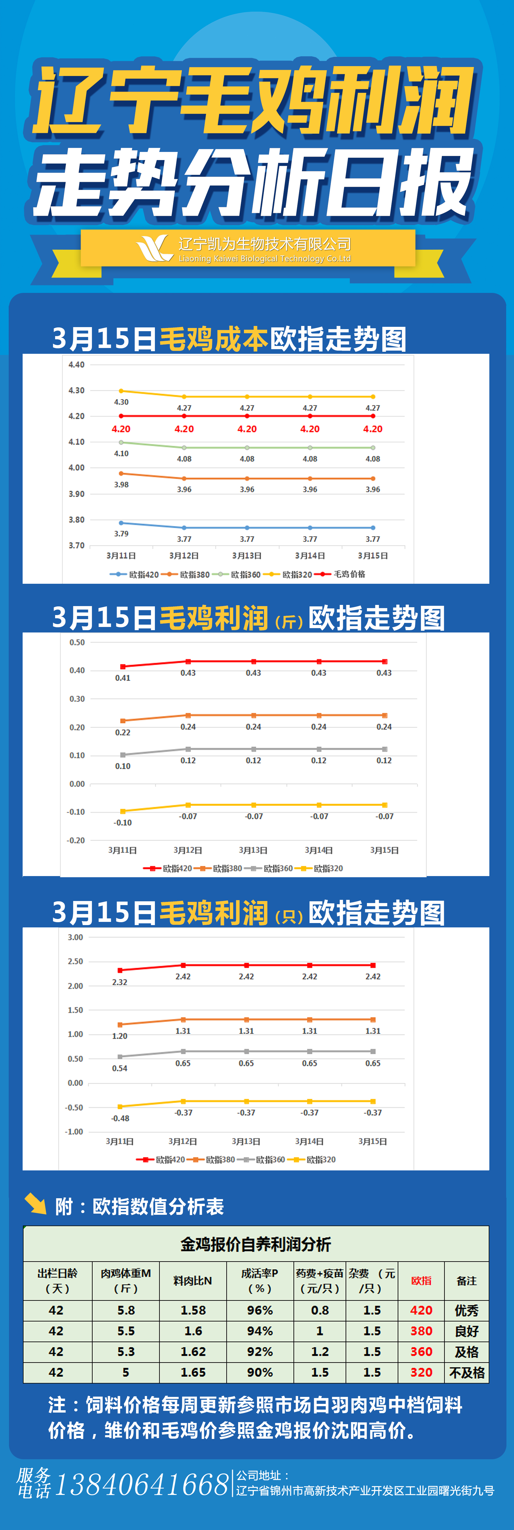 3月15日遼寧地區毛雞利潤走勢分析圖