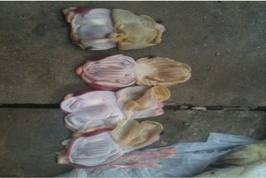 腺胃腫大如球狀、腺胃乳頭變平、胃壁增厚,雞內金易剝離、糜爛、潰瘍,肌胃糜爛、潰瘍、嚴重的穿孔,以及角質層和肌肉層之間有白斑的現象。