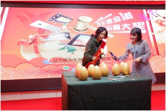 一首《把酒倒滿》唱出了凱為人今天的心情,今夜我們共同暢飲,今夜我們不醉不歸。回想過去的一年,公司取得的成就遠遠離不開管理團隊及全體員工的共同努力,主持人熱情洋溢地為大家頒發了行政優秀員工,行政優秀員工采取歡樂砸金蛋的方式進行獎勵,14名優秀員工輪流上臺砸取屬于自己的那份幸運,在收獲一份幸運的同時收獲一份祝福。