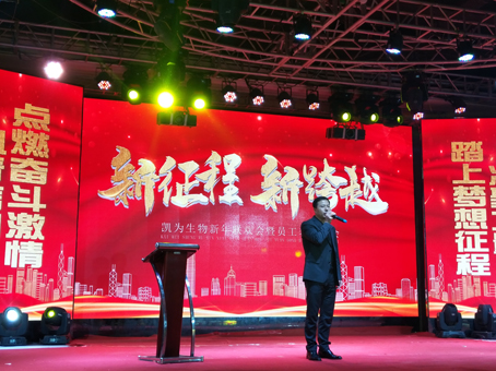 公司總裁王鐵良先生首先總結(jié)公司十余年的奮斗歷程,“從冰雪到綠原,那是冬天走向春天的路,從失敗到成功,那是披襟斬棘闖出來的路,凱為人十余載風(fēng)雨同舟,不負(fù)韶華。過去的一年是我們公司創(chuàng)新業(yè)績、重振區(qū)域品牌的一年,2019年公司不僅實現(xiàn)了銷售收入同比增長,而且公司新增養(yǎng)殖基地三個,新建培訓(xùn)中心已納入養(yǎng)殖服務(wù)板塊,新建檢測中心納入客戶服務(wù)體系。實踐證明:我們一直用凱為的價值觀衡量我們的行動向共同美好的愿景持續(xù)奮進(jìn)!正是因為你們的付出和攜手奮進(jìn)才有今天的凱為。我代表公司感謝所有員工的努力和敬業(yè),同時更要感謝你們的家人,正是他們默默的支持和奉獻(xiàn),使你們能全身心的投入工作,在此,我衷心的祝愿你們健康快樂!萬事如意!!”