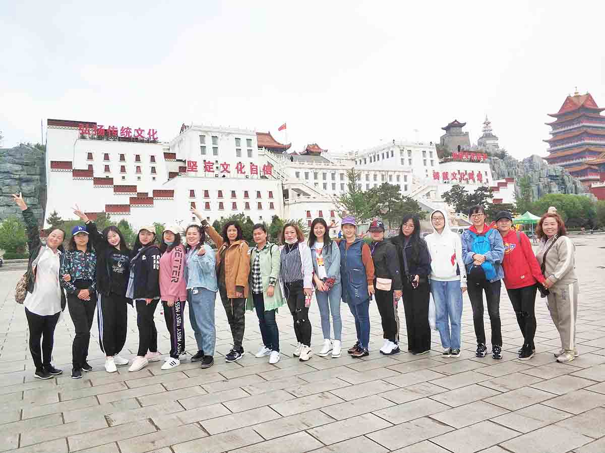 征服九華山頂峰之后,我們順勢而下,游覽了著名的慈海寺。學著周圍虔誠燒香拜佛的樣子,我們滿懷虔誠,感受著古代建筑的大氣與恢弘,也為自己許下美好的愿望。我們接著向小布達拉宮出發了。一路我們徒步前進,小白因為平時鍛煉的少,在下山的時候走的太急,腳抽筋了,經驗豐富的李主管立刻上來按摩,還囑咐多甩一甩腿。多虧她的悉心照顧,小白的腳好多了,不影響繼續步行。小白打趣說“自從來到九華山,腰不疼了,腿不抽了,心也不跳了,感覺越來越年輕!”大家都笑了,氣氛十分活躍。大家心情舒暢,開心地笑著、玩著,互相交流著,活動氣氛熱烈,歡聲笑語聲在山林中飄蕩。沒多久我們就來到了小布達拉宮,領略西域文化的洗禮,感受別樣風情。